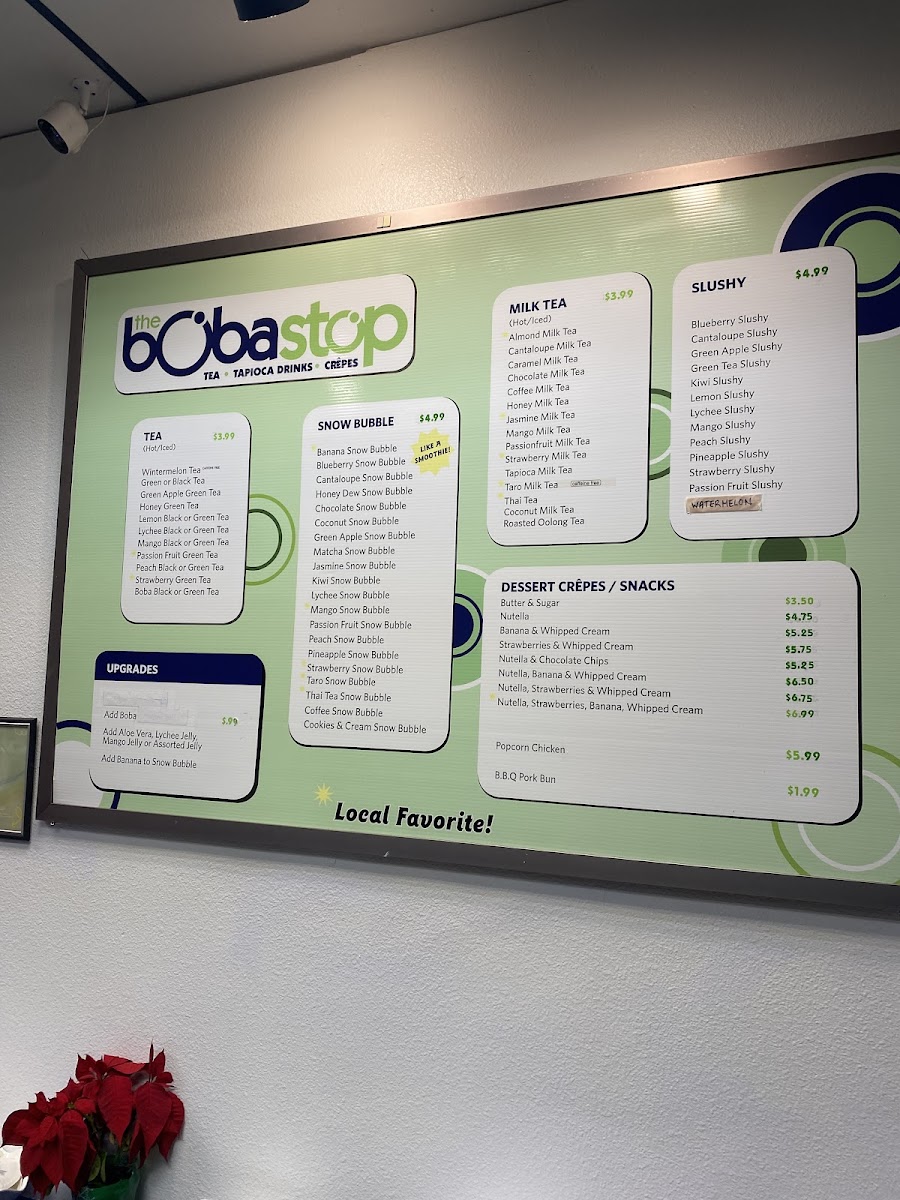 The Boba Stop offers a straightforward menu centered around comforting drinks and casual bites that fit perfectly with its relaxed café atmosphere. Here, you’ll find a variety of bubble teas, including classics like Taro Milk Tea and Mango Milk Tea, alongside refreshing snow bubbles and fruity slushies that are ideal for warm afternoons or quick pick-me-ups.