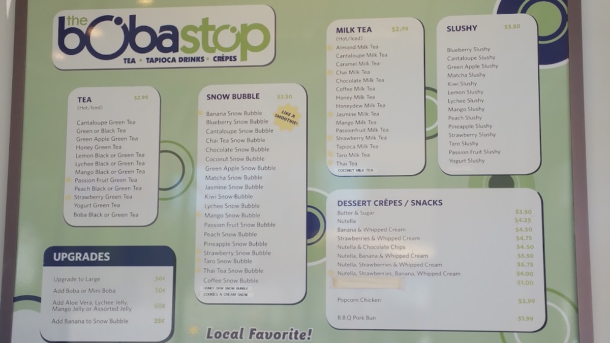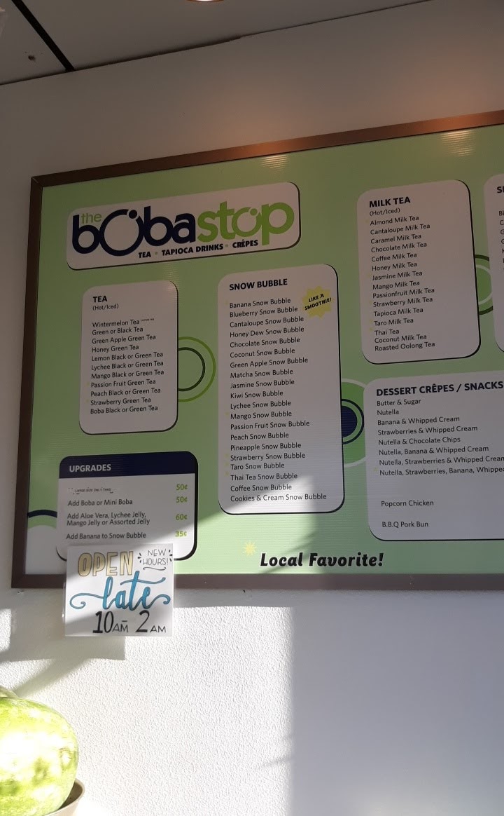The Boba Stop Menu